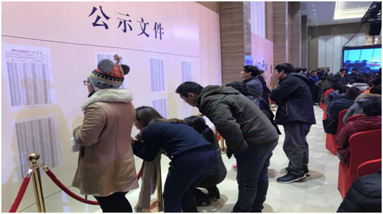 冬日清晨的微微涼意依舊擋不住客戶排隊搶房的熱情,在工作人員的有序引導下,客戶進場有條不紊。為了確保公平公正,本次開盤由乒乓球搖號+公證處公證的形式進行,全程監(jiān)控錄像現場直播。