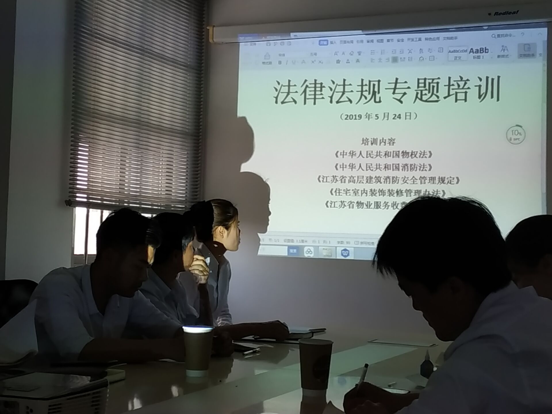 本次培訓(xùn)的內(nèi)容主要有:《中華人民共和國(guó)物權(quán)法》、《中華人民共和國(guó)消防法》、《江蘇省高層建筑消防安全管理規(guī)定》 、 《住宅室內(nèi)裝飾裝修管理辦法》 、 《江蘇省物業(yè)服務(wù)收費(fèi)管理辦法》等五部法律法規(guī)。 培訓(xùn)結(jié)束后,結(jié)合管理項(xiàng)目及崗位的實(shí)際情況,對(duì)全體物業(yè)管理人員進(jìn)行了法律法規(guī)基本知識(shí)技能的現(xiàn)場(chǎng)的考試,使大家在日后的工作中能更好的服務(wù)業(yè)主客戶。 |