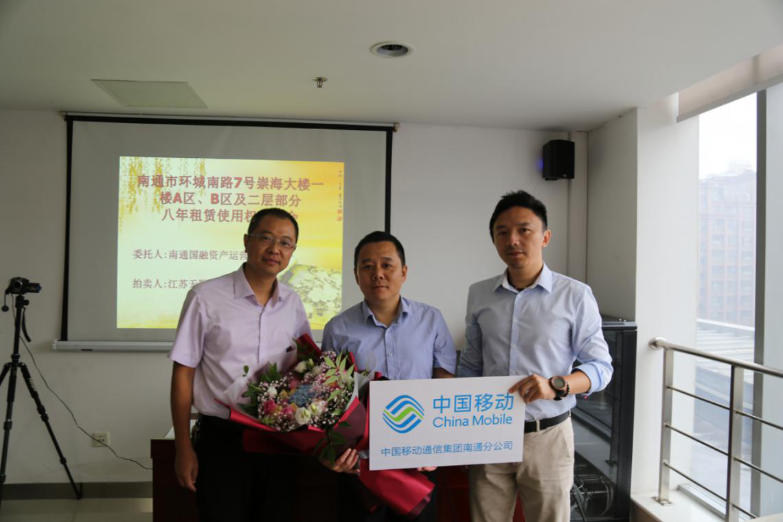 在宣讀了房屋租賃使用權拍賣的特別規(guī)定等文件并確認各競租人無異議后,現場監(jiān)拍人遞交了本場拍賣會的底價函。經拍租,中國移動通信集團江蘇有限公司南通分公司代理人、張家港保稅區(qū)佑福珠寶貿易有限公司代理人分別拍中崇海大樓A區(qū)八年租賃使用權、B區(qū)八年租賃使用權,并簽署了成交確認書,成交年租金合計達620萬元,八年租金總額達4960萬元。公司領導代表公司向房屋競租人遞送了鮮花表達祝賀并合影留念。統一規(guī)劃,統一布局,統一招租,統一競租,國融公司充分挖掘崇海大樓優(yōu)越的商業(yè)地段和濃厚的商業(yè)氛圍優(yōu)勢,轉化為優(yōu)良、持久、高效的經營收益,實現了該處資產科學升值。公司將以崇海大樓成功招租的經驗為借鑒,繼續(xù)做好所管理國有資產的升級改造,切實履行好國有資產保值增值的職責,推動企業(yè)的高質量發(fā)展。