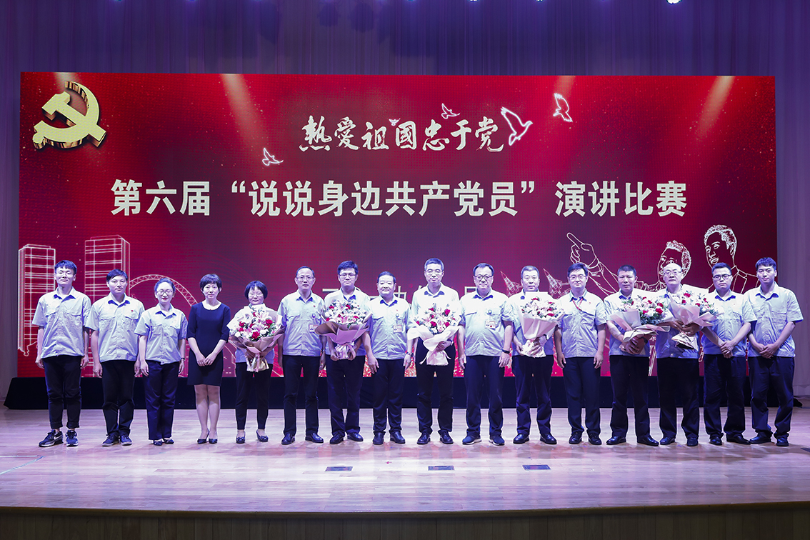來自各基層黨支部的施天鳳、王強等7名演講者聲請并茂地為大家講述了身邊優(yōu)秀黨員的先進事跡,贏得了現(xiàn)場無數(shù)喝彩。 演講比賽結束時,7位演講事跡主人公上臺與大家見面,公司領導為他們獻上了最美麗的鮮花,并現(xiàn)場與遠在非洲工作的演講事跡主人公李紅飛進行了視頻連線,送去了關心和問候,全體參會人員為他們送去了最熱烈的掌聲。