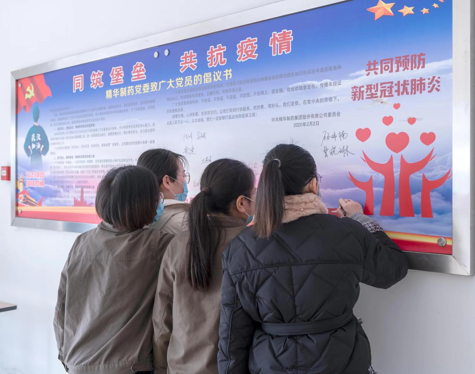 精華制藥黨委發(fā)出倡議書《同筑堡壘,共抗疫情》,倡議黨員同志擔(dān)好責(zé),帶好頭,萬眾一心,眾志成城,以高度的思想覺悟和政治站位爭做科學(xué)防控疫情的宣貫者、助力者和踐行者。黨委領(lǐng)導(dǎo)高度重視疫情防控工作,職責(zé)分工明確,制度規(guī)范到位,行動(dòng)快速高效,一把手親自指揮、親自部署,各級(jí)黨員干部各級(jí)領(lǐng)導(dǎo)帶頭值班,沖在疫情防控第一線,組織黨員始終堅(jiān)守崗位,守護(hù)群眾生命安全和身體健康,以實(shí)際行動(dòng)踐行初心使命。除了做好自身防護(hù)工作和日常工作外,黨員同志們還紛紛要求主動(dòng)值班,堅(jiān)守崗位。黨員帶頭到生產(chǎn)車間一線參加正柴胡飲顆粒的包裝生產(chǎn),集團(tuán)公司科室全體人員也主動(dòng)加入到包裝正柴胡飲顆粒的工作中去。 為保障職工安全健康,精華制藥防控領(lǐng)導(dǎo)小組召開專題會(huì)議,制定防控工作方案,通過微信群、電話等方式部署各項(xiàng)疫情防控工作。組織各職能部門、分公司、子公司負(fù)責(zé)人對(duì)單位員工情況進(jìn)行摸排調(diào)查。凡是有疫情較重地居住史或旅行史的人員,凡是與疫情較重地外來人員有密切接觸史的人員,凡是與疑似、確診病人有接觸的人員,凡是出現(xiàn)發(fā)燒、干咳等異常情況的人員,立即上報(bào)并自我隔離觀察。堅(jiān)決杜絕疫情的傳入與傳播,努力踐行一個(gè)國有企業(yè)的社會(huì)責(zé)任。