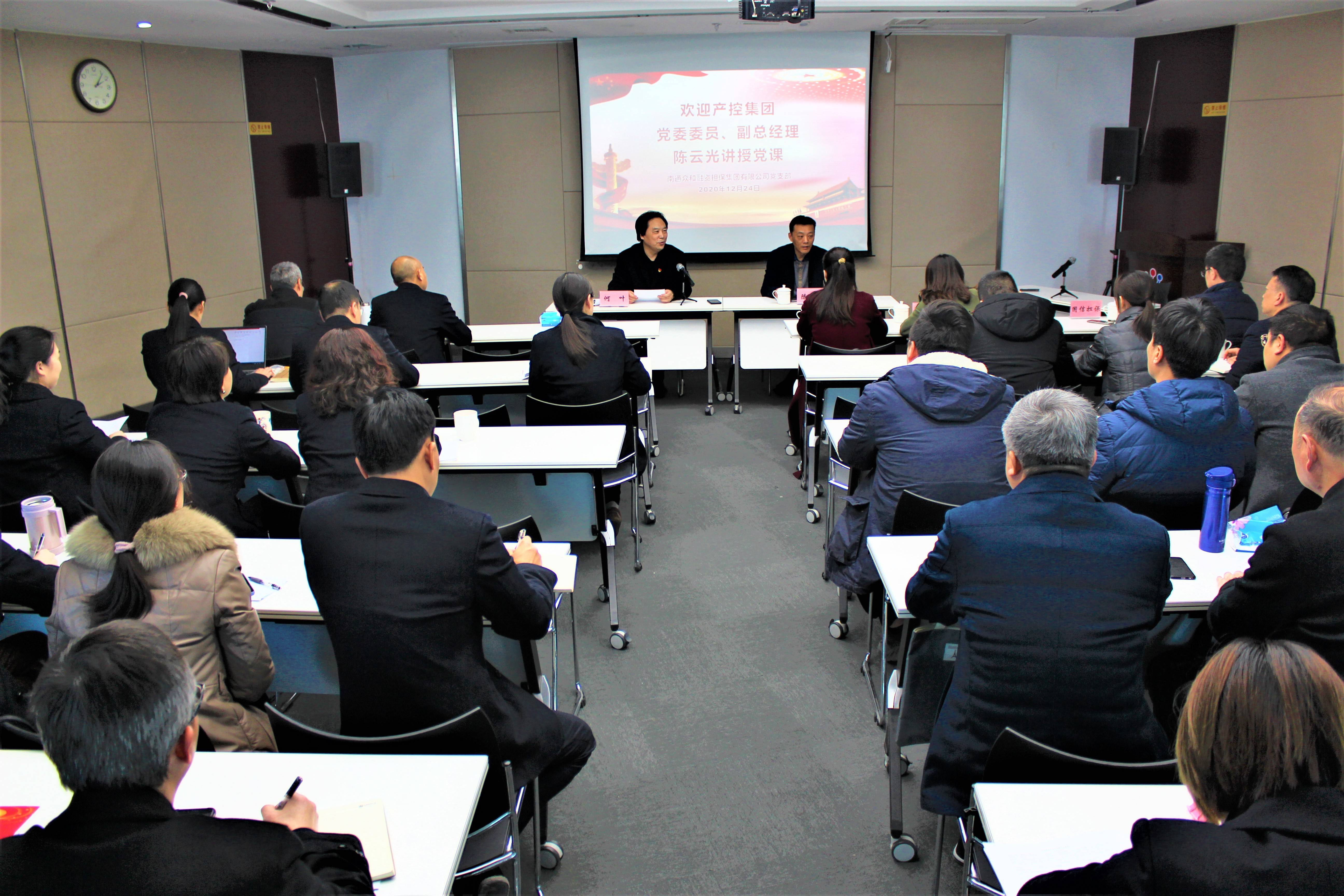 12月24日下午,根據(jù)精準(zhǔn)警示教育活動(dòng)計(jì)劃安排,南通眾和融資擔(dān)保集團(tuán)有限公司黨支部開(kāi)展精準(zhǔn)警示教育專題黨課,邀請(qǐng)產(chǎn)控集團(tuán)黨委委員、副總經(jīng)理陳云光同志為支部全體黨員、入黨積極分子、中層以上干部及子公司領(lǐng)導(dǎo)班子成員講授黨課,產(chǎn)控集團(tuán)財(cái)務(wù)部及國(guó)信擔(dān)保黨支部全體黨員干部一起聆聽(tīng)了黨課。