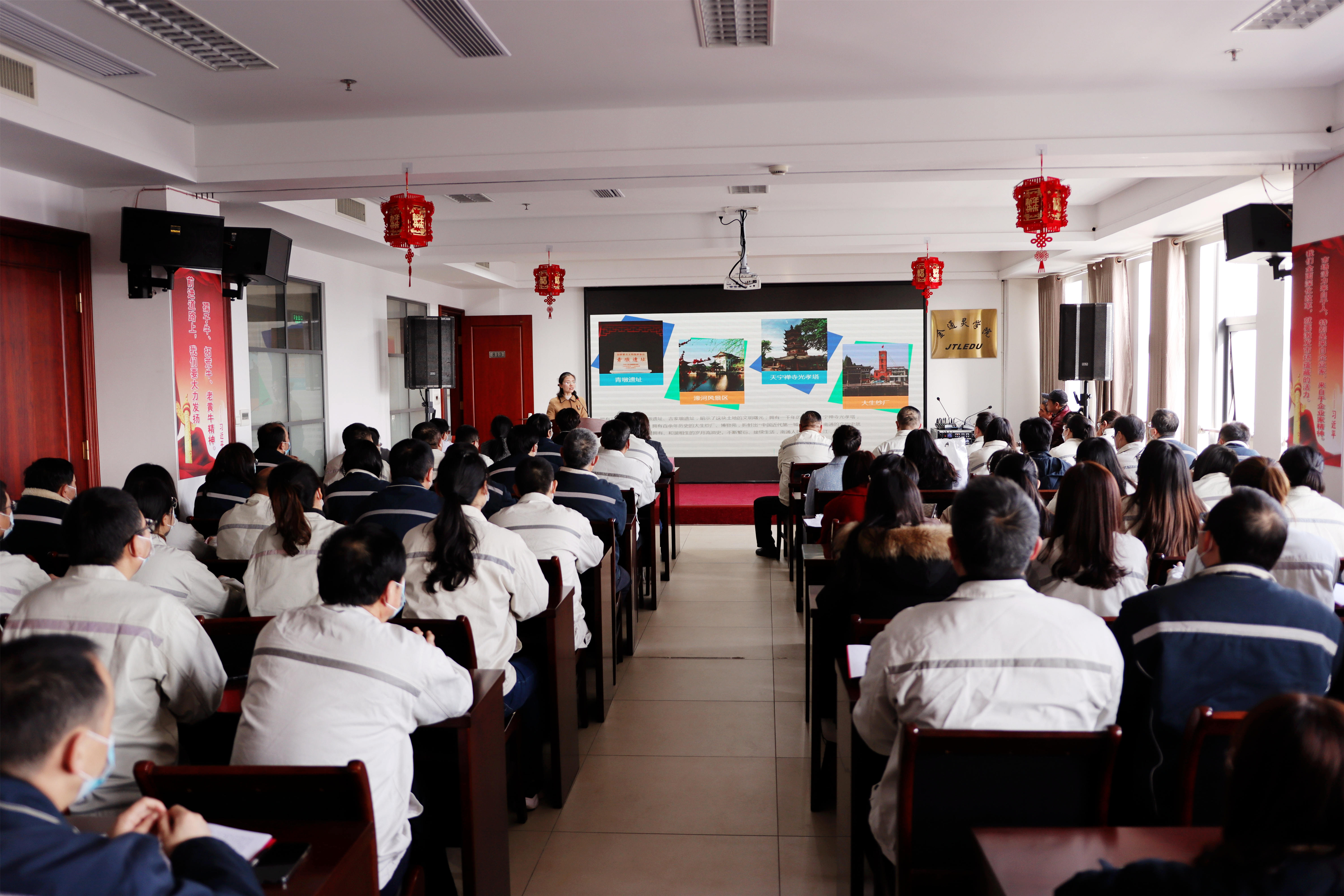 紅色的燈籠帶著節(jié)日的余溫與暖心的“習(xí)語金句”一起裝點(diǎn)著會場的氛圍,臺上宣講員循循善誘,為金通靈職工帶來滿滿理論“干貨”;臺下聽眾聚精會神,給宣講員們送去陣陣掌聲。2月23日下午,崇川區(qū)“學(xué)習(xí)貫徹習(xí)近平總書記視察江蘇重要講話精神”宣講團(tuán)首場宣講活動在金通靈學(xué)院內(nèi)成功舉辦。