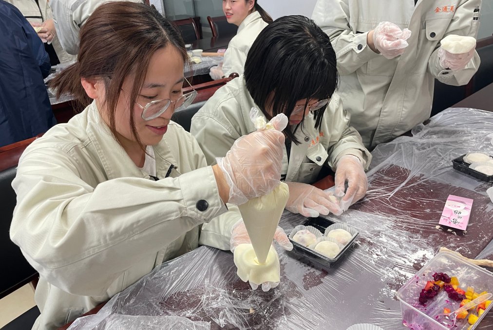 當(dāng)天下午,金通靈近100名女職工歡聚813活動(dòng)室,在張老師的現(xiàn)場(chǎng)制作教導(dǎo)下,分別制作了雪媚娘和便當(dāng)?shù)案??;顒?dòng)現(xiàn)場(chǎng),張老師講解了烘焙知識(shí)和制作流程,職工們?cè)谡J(rèn)真聆聽后,體驗(yàn)著自己動(dòng)手制作甜品的樂(lè)趣,享受著快樂(lè)的烘焙時(shí)光。隨著時(shí)間的推移,一個(gè)又一個(gè)飽滿、垂涎欲滴的雪媚娘、一個(gè)個(gè)精致的便當(dāng)?shù)案庵谱魍瓿伞?