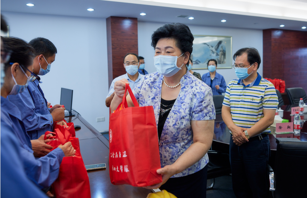 炎炎夏日,酷暑難耐。為進(jìn)一步加強(qiáng)企業(yè)基層員工疫情防控意識(shí),更好地保障一線職工群眾在高溫下正常生活,8月10日下午,市人大常委會(huì)副主任、總工會(huì)主席葛玉琴,市總工會(huì)黨組書記、副主席葛志娟到江天公司指導(dǎo)疫情防控工作,并看望慰問(wèn)一線工作者。市國(guó)資委黨委副書記、副主任宋建宏,產(chǎn)控集團(tuán)黨委副書記、副董事長(zhǎng)、總經(jīng)理顧建國(guó),黨委副書記、工會(huì)主席成剛等領(lǐng)導(dǎo)陪同。