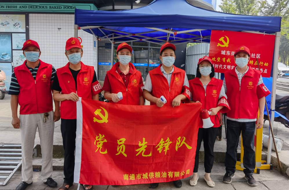 黨旗所指,團(tuán)旗所向。為充分發(fā)揮黨員先鋒模范作用,青年帶頭作用,城供公司成立了黨員先鋒隊(duì)、青年突擊隊(duì)。27日下午,張垛儲(chǔ)備庫青年突擊隊(duì)成員們利用工作外時(shí)間前往海安市雅周鎮(zhèn)興雅社區(qū),穿上紅馬夾,戴上紅帽子,為進(jìn)入小區(qū)居民測(cè)體溫、查看行程碼;公司本部青年突擊隊(duì)隊(duì)員們伴隨烈日,前往濠東社區(qū)開展除草、地面清潔等志愿服務(wù),經(jīng)過大家共同勞動(dòng),社區(qū)面貌得到了較大改善。