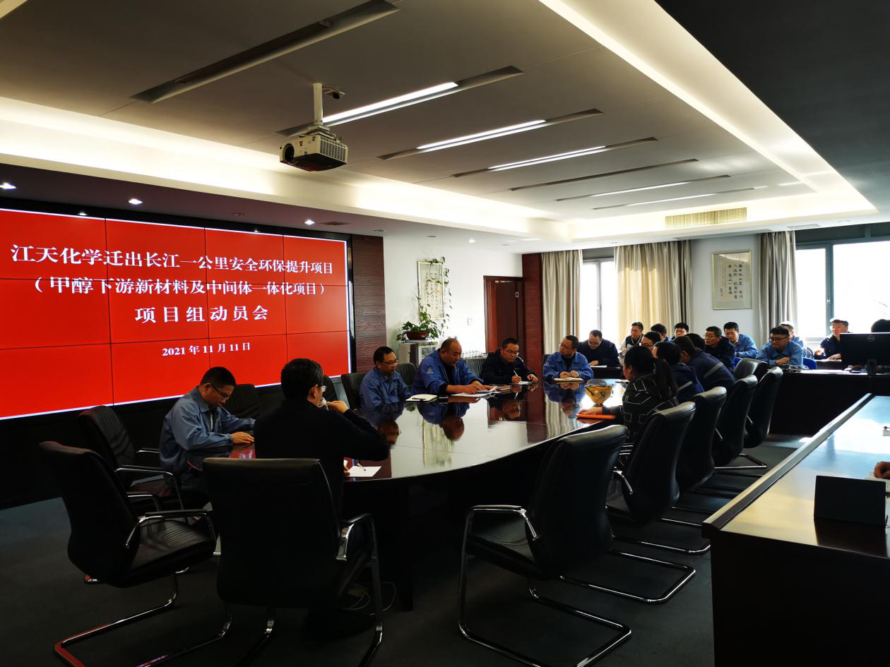 為保障公司搬遷項目有計劃、高質(zhì)量落地實施,11月11日下午,江天化學召開遷出長江一公里安全環(huán)保提升項目(甲醇下游新材料及中間體一體化項目)動員會,公司工程項目組全體成員參加會議。