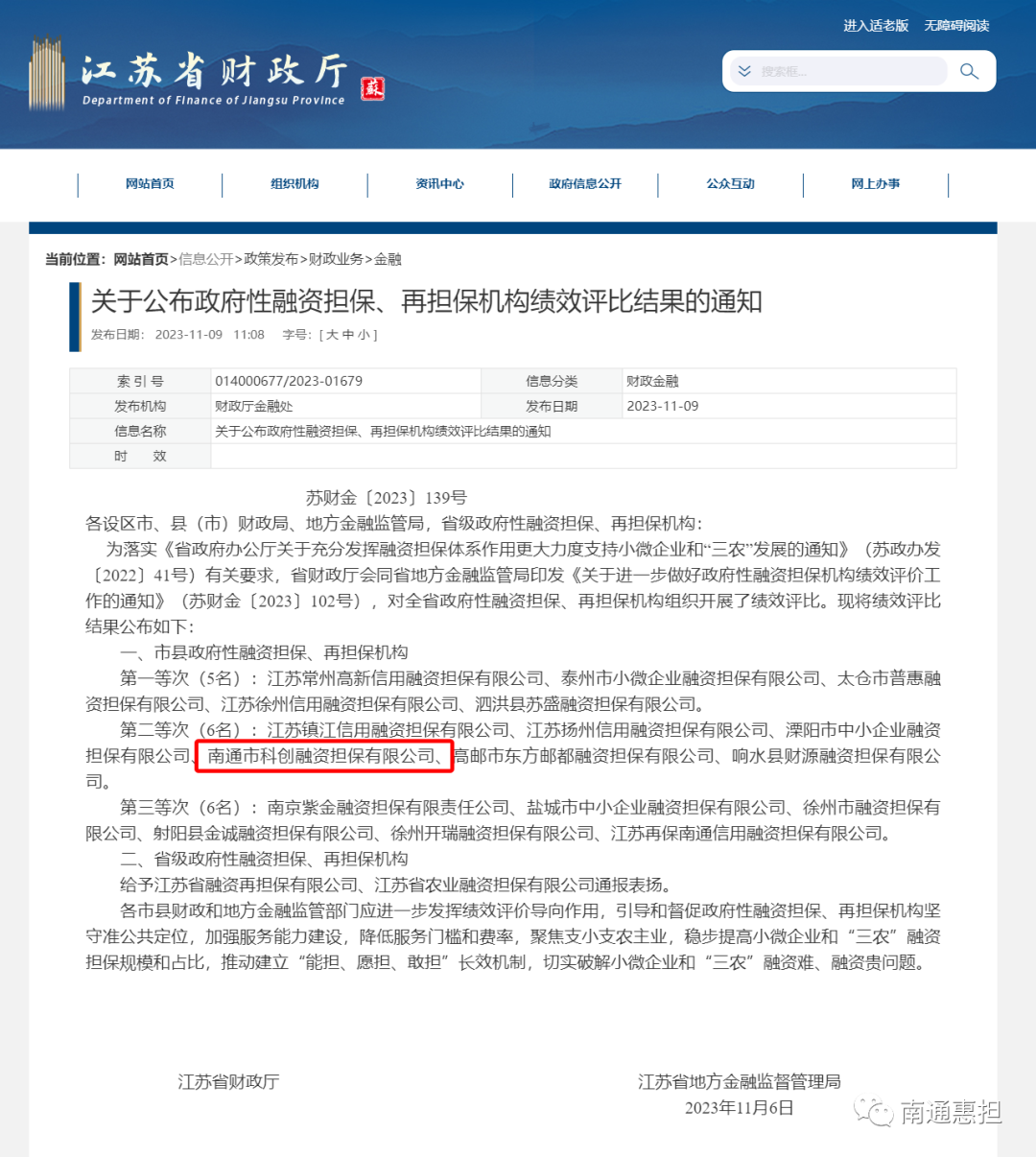 科創(chuàng)融資擔(dān)保躋身全省前十!江蘇省政府性融資擔(dān)保機(jī)構(gòu)績效評(píng)比結(jié)果出爐
