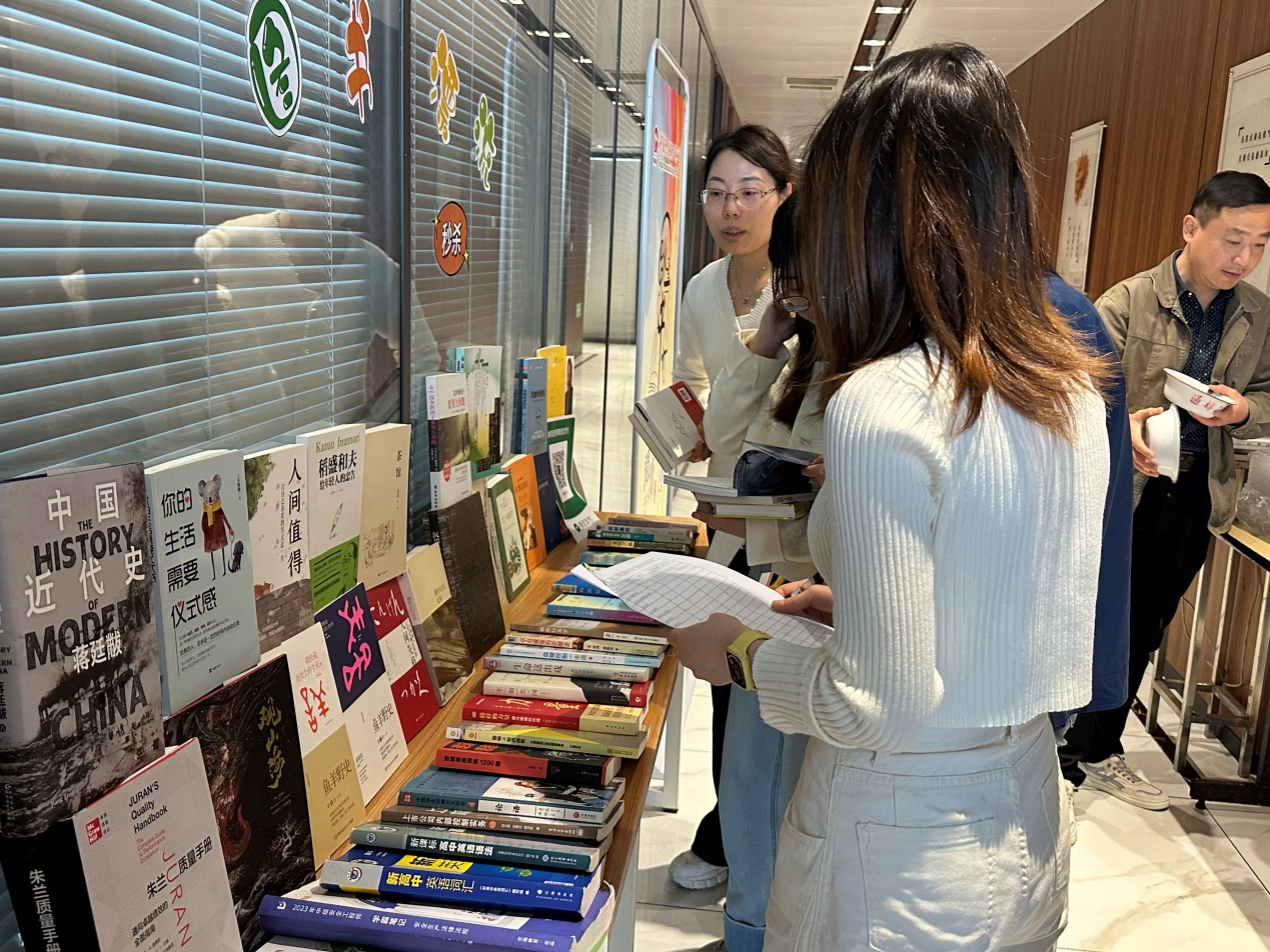 書(shū)香潤(rùn)智,雅行成習(xí)。為了讓員工們閑置的圖書(shū)流動(dòng)起來(lái),提高圖書(shū)的使用價(jià)值,營(yíng)造良好的讀書(shū)氛圍,打造書(shū)香精華,第29屆世界讀書(shū)日之際,精華制藥直屬團(tuán)支部根據(jù)集團(tuán)黨委部署,開(kāi)展了“好書(shū)漂流、愛(ài)心無(wú)限-跳蚤書(shū)市”活動(dòng)。 為了保證此次活動(dòng)的順利開(kāi)展,集團(tuán)直屬黨支部發(fā)出倡議,動(dòng)員員工將家中閑置的書(shū)籍捐贈(zèng),由集團(tuán)直屬團(tuán)支部負(fù)責(zé)收集售賣。 4月24日,直屬團(tuán)支部將“跳蚤書(shū)市”設(shè)在了人流量較大的公司食堂,支委們使出渾身解數(shù),書(shū)籍介紹、宣傳售賣、講價(jià)議價(jià)……全然一副新店開(kāi)張的畫(huà)面,熱情洋溢。來(lái)往的員工們?nèi)祟^攢動(dòng),挑選購(gòu)買,收獲頗豐。公司領(lǐng)導(dǎo)們也積極加入“購(gòu)書(shū)”隊(duì)伍,讓“跳蚤書(shū)市”的氣氛更加活躍。 此次“跳蚤書(shū)市”是集團(tuán)第三屆“菁閱”讀書(shū)月系列活動(dòng)之一,近年來(lái)公司致力打造良好學(xué)習(xí)氛圍,持續(xù)激發(fā)員工們的閱讀熱情,不斷為打造精華“百年老店”蓄力。據(jù)統(tǒng)計(jì),僅當(dāng)日售賣書(shū)籍就已超捐贈(zèng)書(shū)籍的半數(shù),后續(xù)團(tuán)支部將集合所有售書(shū)款用于公益事業(yè)。