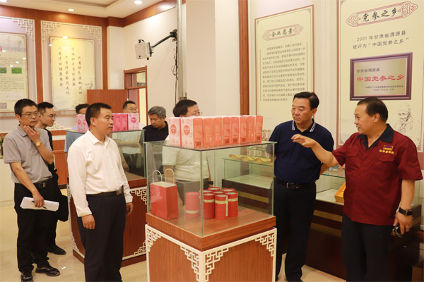 6月25日下午,甘肅省人大常委會黨組副書記、副主任馬廷禮,甘肅省人大農(nóng)委副主任委員、常委會農(nóng)工委主任王春江等調(diào)研組領(lǐng)導一行,在隴西縣縣委書記祁雪峰等陪同下蒞臨隴西保和堂調(diào)研指導工作。公司總經(jīng)理馬中森全程接待。馬廷禮副書記一行先后參觀了公司規(guī)?;療o硫生產(chǎn)加工車間、展廳等。